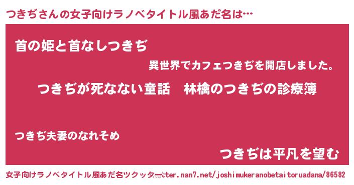 | ポケモン風あだ名 | 『ツーキイ』『ツキゴンZ』『ヒツキヂ』 |