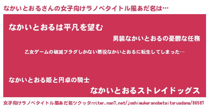 | ヘコむあだ名 | 『なかっ子』『なかもー』『酢こんぶ』 |