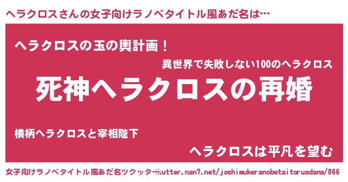 | 男性向けラノベタイトル風あだ名 | 『ノーゲーム・ノーヘラクロス』 |