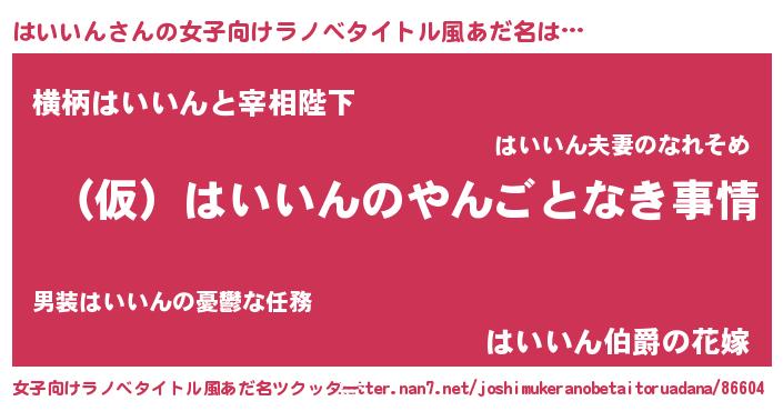 | 肩書あだ名 | 『はいいん御曹司』『はいいん国家主席』 |
