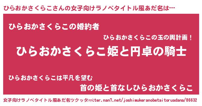| 男性向けラノベタイトル風あだ名 | 『ヒラオカサクラコアートオンライン』 |