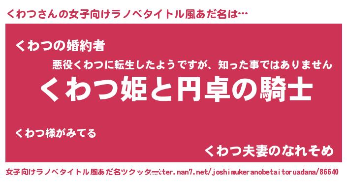 | 男性向けラノベタイトル風あだ名 | 『くわつの憂鬱』 |