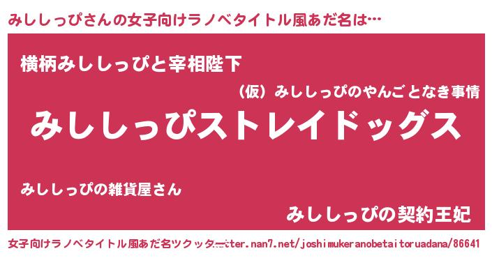 | ヘコむあだ名 | 『みししっぴ(震え声)』『みしもー』 |