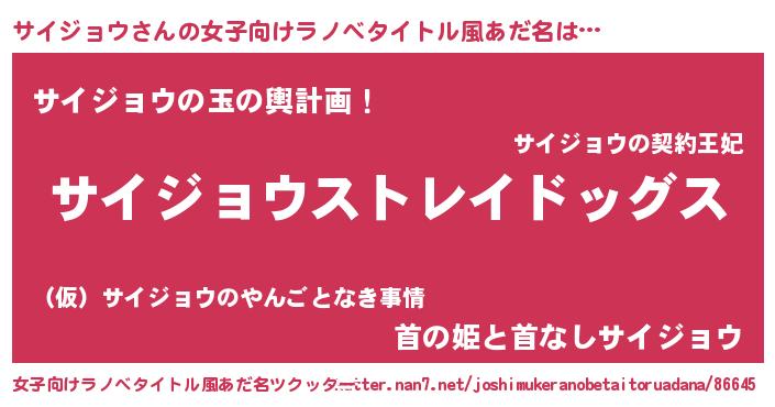 | 男性向けラノベタイトル風あだ名 | 『Re:サイジョウから始める異世界生活』 |