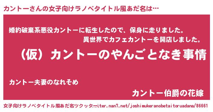 | 男性向けラノベタイトル風あだ名 | 『カントーの憂鬱』『カントースレイヤー』 |