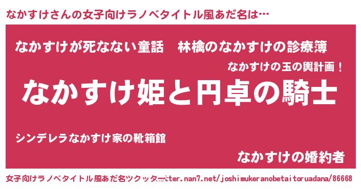 | 男性向けラノベタイトル風あだ名 | 『ナカスケアートオンライン』 |