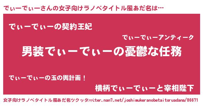 | 胡散臭い通販商品みたいなあだ名 | 『来世でも幸せになれる健康食品…その名も「でぃーでぃー」』 |
