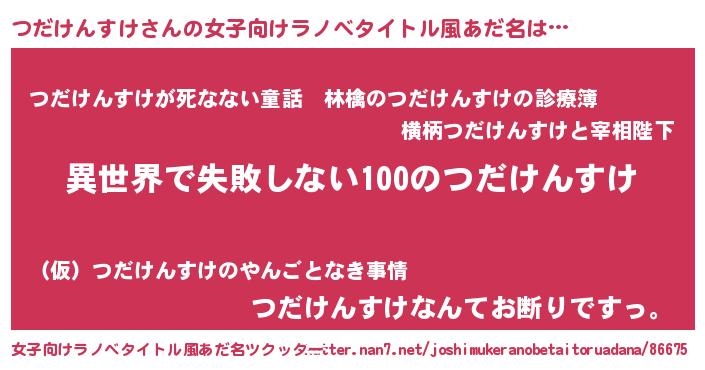 | 男性向けラノベタイトル風あだ名 | 『つだけんすけという概念が存在しない退屈な世界 』 |