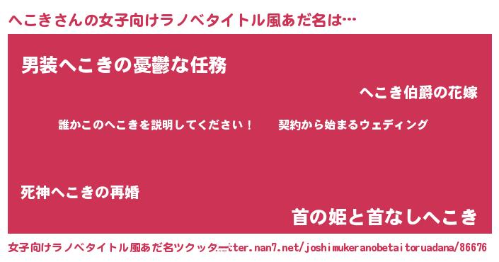 | 胡散臭い通販商品みたいなあだ名 | 『億万長者になれるブレスレット…その名も「へこき」』 |