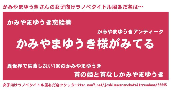 | 男性向けラノベタイトル風あだ名 | 『かみやまゆうきの嫁は女の子じゃないと思った?』 |
