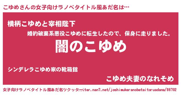 | ヒーロー風カッコイイあだ名 | 『最強戦士コユメ』『天空の使者こゆめ』 |