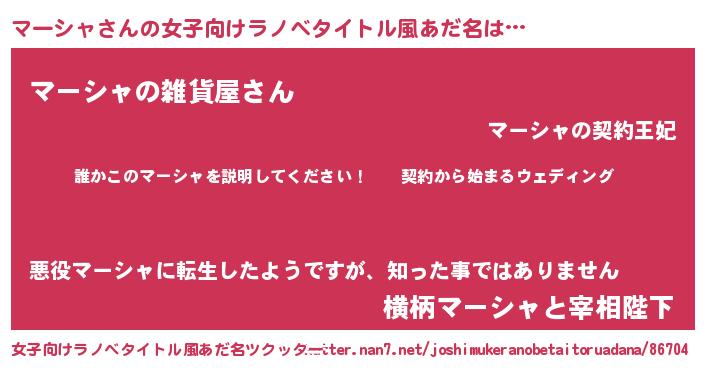 | 胡散臭い通販商品みたいなあだ名 | 『億万長者になれるブレスレット…その名も「マーシャ」』 |