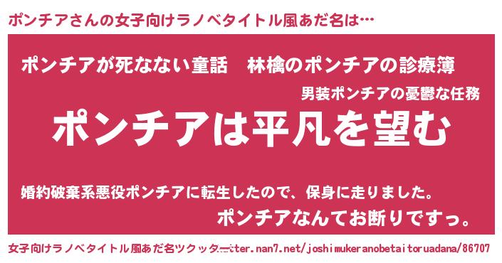 | 男性向けラノベタイトル風あだ名 | 『ダンジョンにポンチアを求めるのは間違っているだろうか』 |