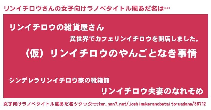 | 男性向けラノベタイトル風あだ名 | 『リンイチロウの憂鬱』 |