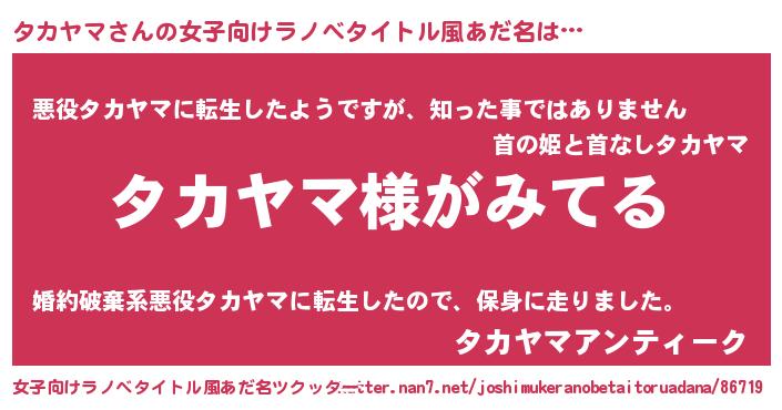 | ヘコむあだ名 | 『タカっ子』『タカヤマ(苦笑)』 |