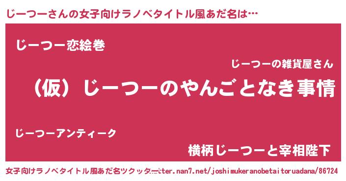 | 男性向けラノベタイトル風あだ名 | 『じーつーの憂鬱』 |