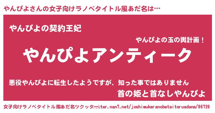 | 男性向けラノベタイトル風あだ名 | 『魔法科高校のやんぴよ』 |