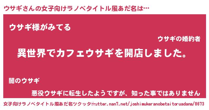 | 男性向けラノベタイトル風あだ名 | 『誰もが恐れるあのウサギが、ぼくの専属メイドになるようです。』 |