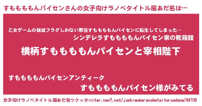 | 男性向けラノベタイトル風あだ名 | 『すももももんパイセンに滅ぼされるだけの簡単なお仕事です』 |