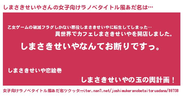 | 男性向けラノベタイトル風あだ名 | 『魔法科高校のしまさきせいや』 |