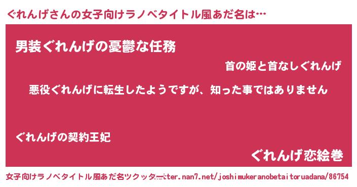 | 男性向けラノベタイトル風あだ名 | 『この素晴らしい世界にぐれんげを!』 |