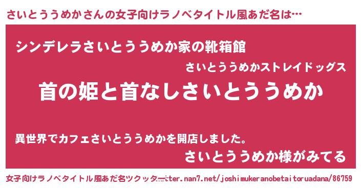 | 意味不明あだ名 | 『とにかく怪しいさいとううめか』 |