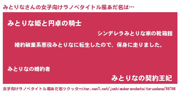 | 胡散臭い通販商品みたいなあだ名 | 『必ず成功する霊験あらたかなお札…その名も「みとりな」』 |