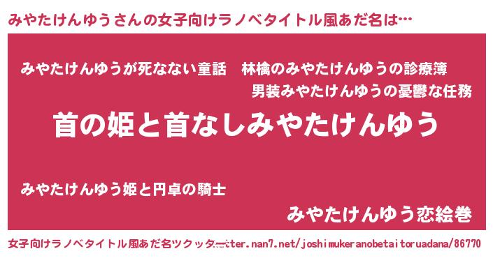 | 意味不明あだ名 | 『住所不定無職みやたけんゆう(56歳)』 |