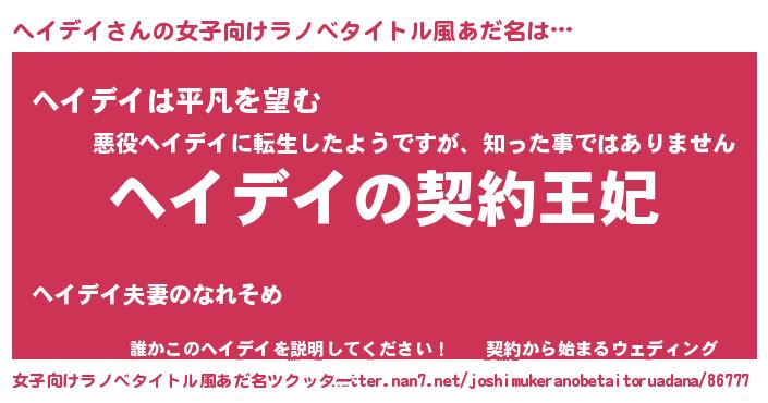 | 男性向けラノベタイトル風あだ名 | 『誰もが恐れるあのヘイデイが、ぼくの専属メイドになるようです。』 |