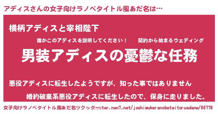 | 男性向けラノベタイトル風あだ名 | 『うちのアディスが世界を掌握している!』 |