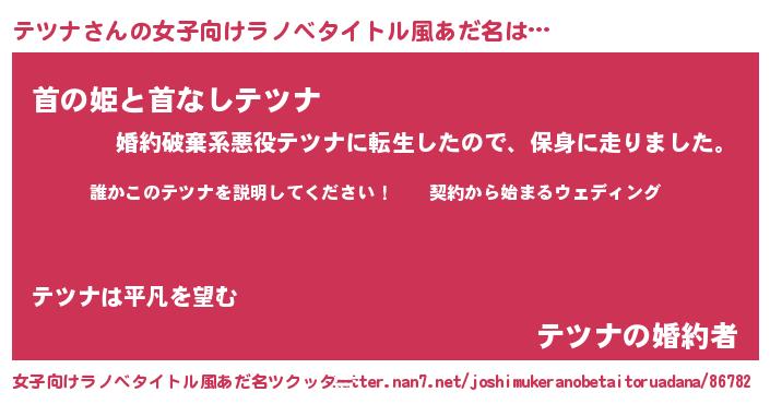 | 男性向けラノベタイトル風あだ名 | 『テツナアートオンライン』 |