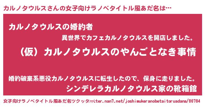 | 男性向けラノベタイトル風あだ名 | 『カルノタウルスの憂鬱』 |