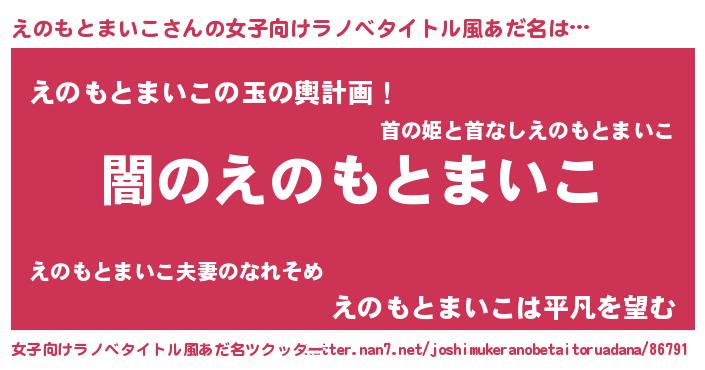 | 男性向けラノベタイトル風あだ名 | 『Re:えのもとまいこから始める異世界生活』 |