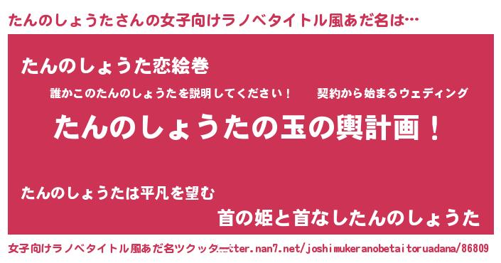 | 男性向けラノベタイトル風あだ名 | 『転生したらたんのしょうただった件』 |