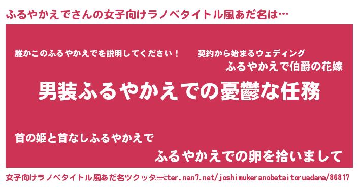 | 男性向けラノベタイトル風あだ名 | 『うちのふるやかえでが世界を掌握している!』 |