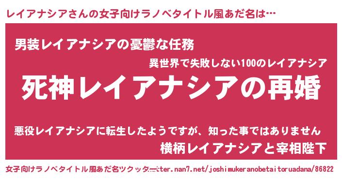 | 男性向けラノベタイトル風あだ名 | 『ノーゲーム・ノーレイアナシア』 |