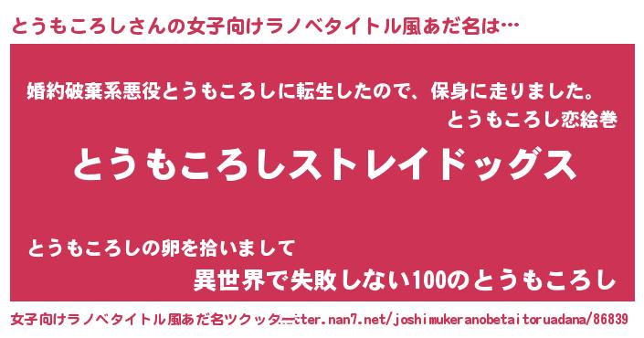 | 胡散臭い通販商品みたいなあだ名 | 『芸能人もオススメする高麗人参…その名も「とうもころし」』 |