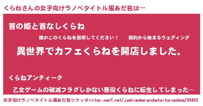 | 男性向けラノベタイトル風あだ名 | 『誰もが恐れるあのくらねが、ぼくの専属メイドになるようです。』 |