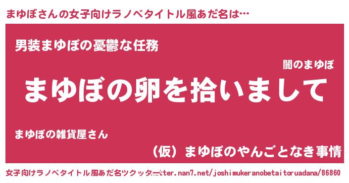 | 意味不明あだ名 | 『とにかく怪しいまゆぼ』『自称まゆぼ』 |
