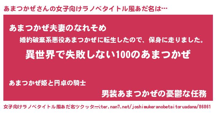 | 意味不明あだ名 | 『永久保存あまつかぜ』『自称あまつかぜ』 |