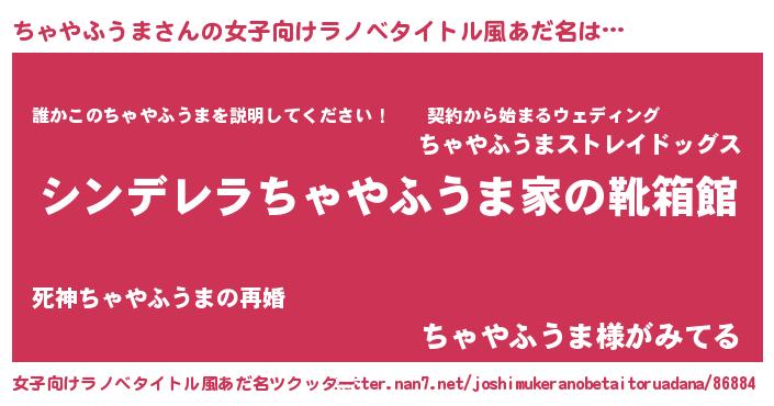 | 欧米人風あだ名 | 『ちゃやふうま・ステッグマイヤー』 |