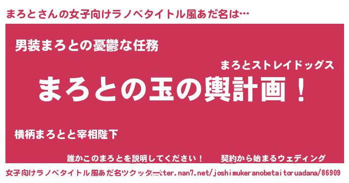| 男性向けラノベタイトル風あだ名 | 『まろと~年齢イコール彼女いない歴の魔法使い~』 |