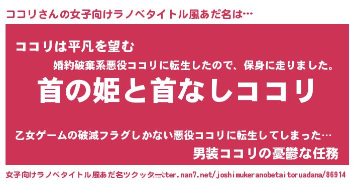 | 胡散臭い通販商品みたいなあだ名 | 『信頼と実績のネックレス…その名も「ココリ」』 |
