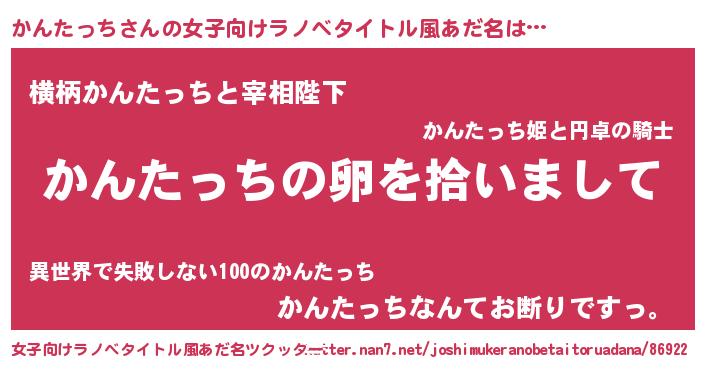 | 男性向けラノベタイトル風あだ名 | 『かんたっちの嫁は女の子じゃないと思った?』 |