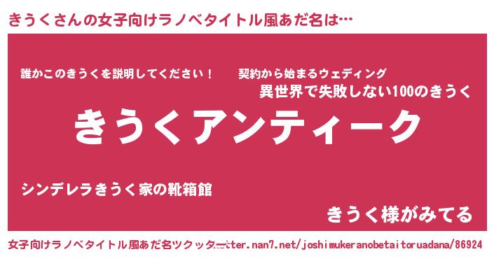 | 意味不明あだ名 | 『自称きうく』『ペロリンきうく』 |