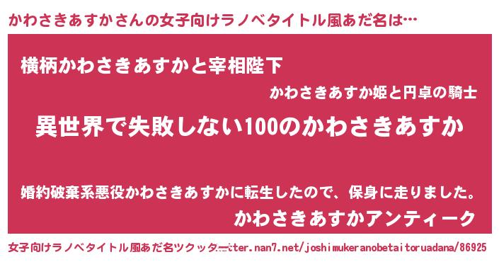 | 男性向けラノベタイトル風あだ名 | 『かわさきあすかという概念が存在しない退屈な世界 』 |