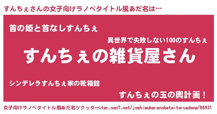 | 男性向けラノベタイトル風あだ名 | 『やはりすんちぇの青春ラブコメはまちがっている 』 |