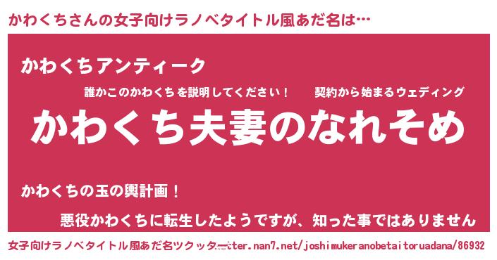 | 欧米人風あだ名 | 『ダニエルかわくち』『マイケルかわくち』 |