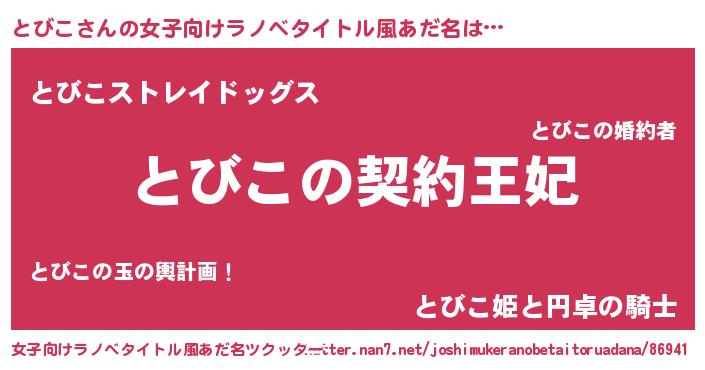 | 男性向けラノベタイトル風あだ名 | 『とびこという概念が存在しない退屈な世界 』 |