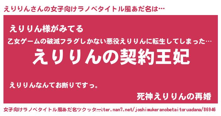 | 男性向けラノベタイトル風あだ名 | 『誰もが恐れるあのえりりんが、ぼくの専属メイドになるようです。』 |